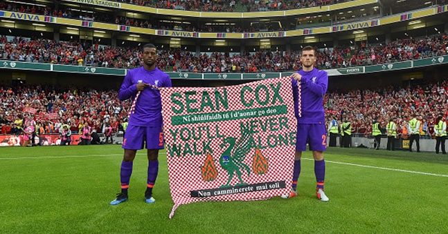 Liverpool boss Jürgen Klopp found time on Liverpool’s recent trip to Dublin to pay a visit to Cox’s family while the players also gathered in the centre circle of the Aviva Stadium to unveil a banner displaying a message of support for him after the final whistle against Napoli.