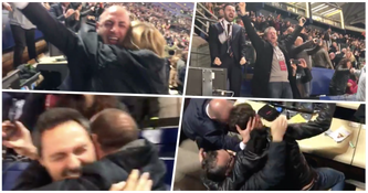 Some of them open-jawed, eyes wide, others embracing and the rest just losing their shit, jumping around the place and waving their arms in the air.