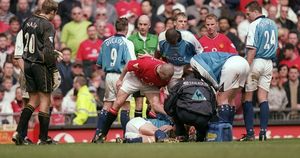 21 Apr 2001: Roy Keane of Manchester United shouts at Alf Inge Haaland of Manchester City following his red card during the FA Carling Premiership match played at Old Trafford, in Manchester, England. The match ended in a 1-1 draw. Mandatory Credit: Gary M Prior/Allsport