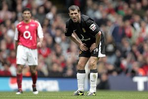 CARDIFF, WALES - May 21: Roy Keane of Manchester United is injured during the FA Cup Final match between Arsenal and Manchester United at Millennium Stadium on May 21, 2005 in Cardiff, Wales. (Photo by Richard Sellers/Sportsphoto/Allstar via Getty Images)