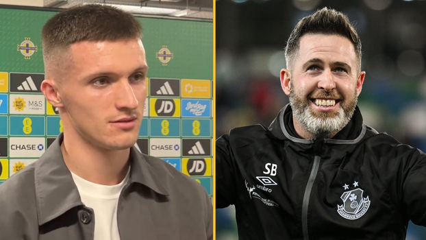 His smile quickly turned to shock after the game, however, as an Off The Ball reporter pointed out that Larne had nominated him a new Dad in their match programme.