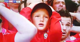 A reply of the fan reaction zoomed in on a cherubic looking young Welsh fan, who was all ready to celebrate the goal, but when the chance was saved, the angelic mask slipped as he clearly mouthed the beginning of ‘For fuck’s sake!”