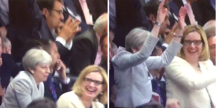 Yes, that really did just happen. That is Home Secretary Amber Rudd next to her.