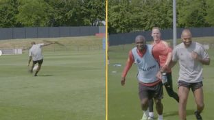 In a video posted to the belgianreddevils Instagram page (check the second slide below), Henry can be seen effortlessly curling a free-kick over the wall and beyond the goalkeeper. Having done so, he walks off without a flicker of emotion, despite the wild celebrations from the likes of Romelu Lukaku and De Bruyne.