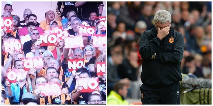 And the Hull fans have had enough. A group of them made their feelings known with a protest during the match, with many of them holding up signs with the simple message “NO”.