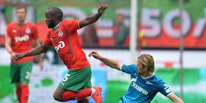 MOSCOW, RUSSIA – MAY 04: Lassana Diarra (L) of FC Lokomotiv Moscow challenged by Anatoliy Tymoshchuk of FC Zenit St. Petersburg during the Russian Premier League match between FC Lokomotiv Moscow and FC Zenit St. Petersburg at Lokomotiv Stadium on May 04, 2014 in Moscow, Russia. (Photo by Epsilon/Getty Images)