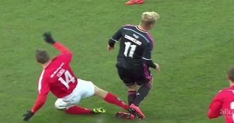 Cornelius, who now plies his trade with Copenhagen, was on the receiving end of a poorly placed tackle from Silkeborg’s Dennis Flinta which left sent his ankle into a position that an ankle should never find itself.