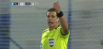 With the match finely poised at 1-1, Delfino awarded a spot-kick to hosts Velez for an apparent handball by defender Daniel Valencia, who received a second yellow card for the offence.