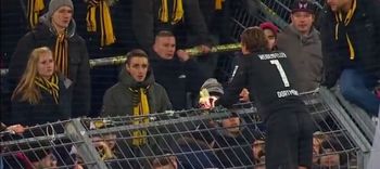The Dortmund faithful let rip at the final whistle and it needed interventions by Mats Hummels and goalkeeper Roman Weidenfeller, who scaled a fence at one stage, to sate them.