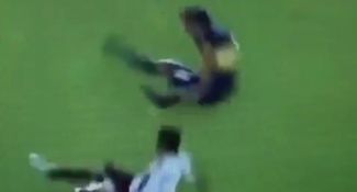 Tevez was skittled into the sky by the challenge and while the Racing defender won the ball, he did concede a free-kick. He wasn’t happy about it but Tevez was none too chuffed himself.
