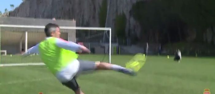 He’s been out on the training pitch recently with striker Valere Germain, giving the most laid back demonstration in how to score the perfect thunderbastard of a goal.