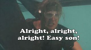 Unsurprisingly, his Bushtucker trial this week (whatever the hell that is) makes for pretty compelling viewing. Check out the cockney geezer grapple eels, face off against water pythons and be scared out of his tree by water dragons in this incredible clip.