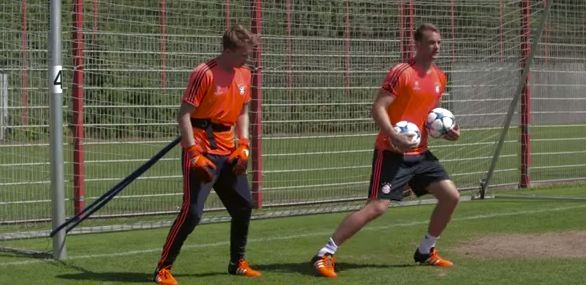 There are more gems in the video like Arjen Robben going through speed training and Thomas Muller being a general legend but skip to 7:07 (if it hasn’t already) for the Neuer masterclass.