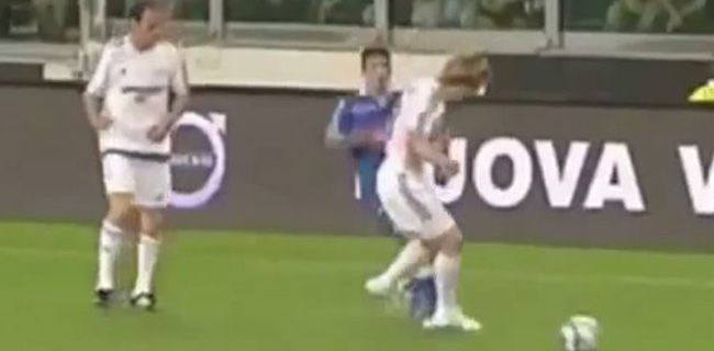 During the match, Italian rapper Moreno (don’t worry, we’ve never heard of him either) had perhaps his finest moment on football pitch when he artfully nutmegged Nedved.