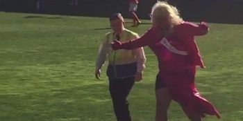 We admit that we struggle to see the point of pitch invaders. Why would you go to a game to run across a pitch only to be caught and then probably kicked out.