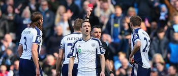 A clear foul after just 80 seconds by Craig Dawson on Wilfried Bony was correctly penalised with a red card but Swarbrick issued it to Gareth McAuley. As the players don’t look that alike, perhaps it was the numbers (Dawson is 25, McAuley is 23) that confused the ref.