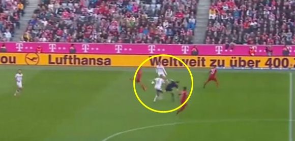 Bayern were two up against their visitors during Saturday’s Bundesliga clash so when the away side saw any opportunity of breaking forward, no bloody official was going to stand in their way.