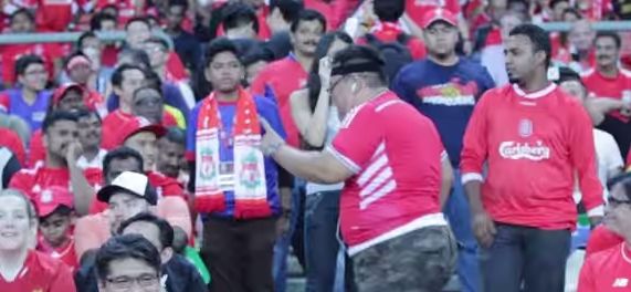 A daring United fan hijacked Liverpool’s game with the Malaysia XI yesterday, stuck his head phones in, stood up in the middle of the ‘Pool supporters and danced his heart out. He was being booed, heckled and eventually he was escorted back to his seat by a Liverpool fan at the end of his tether.