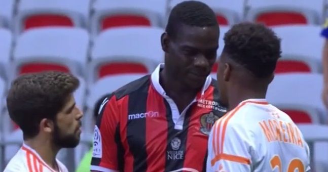 Mario Balotelli’s ludicrous form since moving to Nice was cut short when the controversial striker was shown a red card in injury time of his new club’s 2-1 victory over Lorient on Sunday afternoon.
