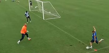 Inter Milan uploaded a video of a recent training session featuring a goal that firmly falls into the “you’ll only see it on the training ground” category of golazos.