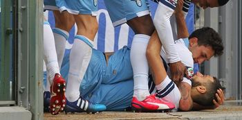 Candreva tried to scale a fence to join supporters but instead slid horribly into the metal barrier, hurting his knee in the process. The Italian limped away and was unable to play any further part in the game, but thankfully, according to manager Stefano Pioli, the forward is not seriously injured.