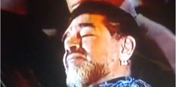 When Venezulan president Nicolas Maduro directed the crowd’s attention to Maradona, the Barcelona hero was conked.