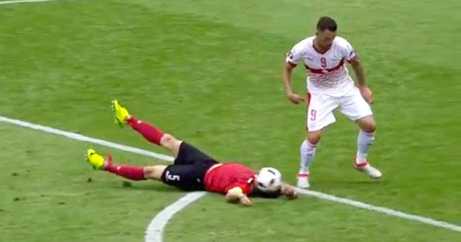 It's real trouble for #ALB now in #EURO2016… What was Lorik Cana doing though… https://t.co/TJr15m4QiK https://t.co/10T0u5xh5F