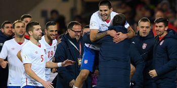 The Serbian decided to congratulate his teammate by putting him in a headlock and pulling him to the ground. As you do.