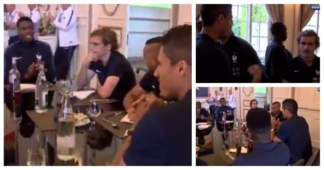 Varane joined up with the international side on Tuesday after he was done celebrating in Madrid and received a warm welcome from everyone except Antoine Griezmann.