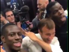 After France’s World Cup final win against Croatia yesterday afternoon, President Emmanuel Macron joined the squad to celebrate in the changing room.