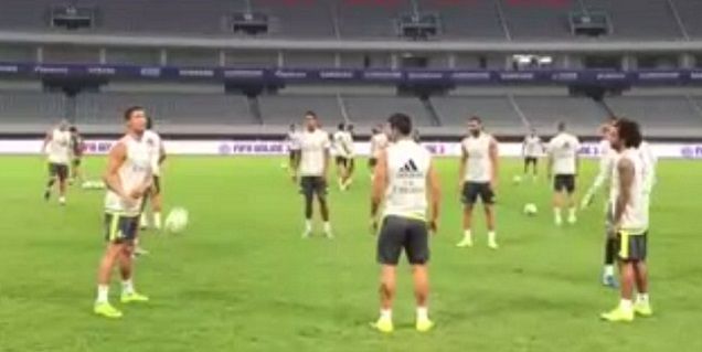 Cristiano Ronaldo was kicking the ball about with some of his Real Madrid teammates yesterday in China, ahead of their pre-season friendly with AC Milan.