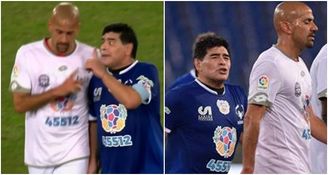 Maradona had to be restrained by security staff and former Brazil defender Cafu. Veron just appeared embarrassed, and not too surprised that Diego was looking for a row during a charity game.