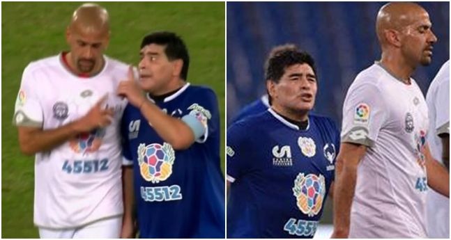 The Argentine legend clashed with Juan Sebastian Veron during a game in Rome. Maradona had appeared to be enjoying himself in the game, and even set up for a goal for Francesco Totti.