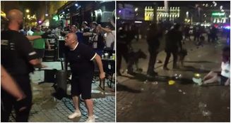 The incident began outside the Queen Victoria pub, and England fans were heard chanting “ISIS, where are you?”.