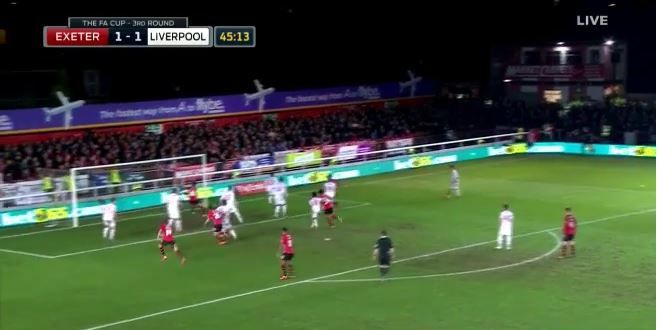 Exeter City went into half time of their FA Cup clash against Liverpool 2-1.