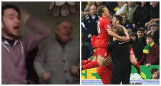 Twitter user Kevin Kelly, from Dublin, uploaded a video of him and his father celebrating Adam Lallana’s last minute winner in yesterday’s 5-4 thriller against Norwich City.