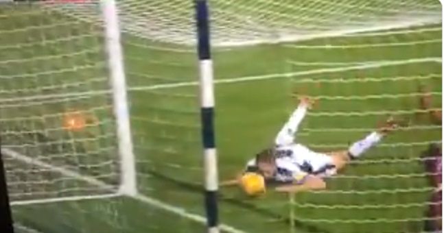 The former Southampton striker bundled the ball into the net with his hand after making initial contact with his head.
