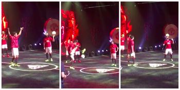 Most of the United squad were in attendance, including Mata, who went off against a freestyler on stage. As you can probably imagine, the professional trickster had all the skills, but Mata wasn’t about to be showed up in front of the cameras.
