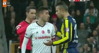 While competing for a ball, van Persie appeared to foul Tosic and grab him by the head, but the Besiktas player was handed a red card for his reaction while Van Persie while van Persie remained on the pitch after falling to the ground as if he had been shot.