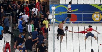 Moments after the final whistle blew, a section of Russia fans vaulted the flimsy tarpaulin barrier that was the only thing separating them from the English supporters, and charged across the stand causing pandemonium and panic.