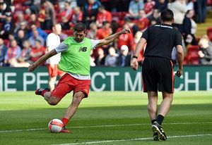 LIVERPOOL, ENGLAND - MARCH 25: (THE SUN OUT, THE SUN ON SUNDAY OUT) Steven Gerrard of Liverpool Legends before the LFC Foundation Charity Match between Liverpool Legends and Real Madrid Legends at Anfield on March 25 in Liverpool, England. (Photo by LFC Foundation/Getty Images)