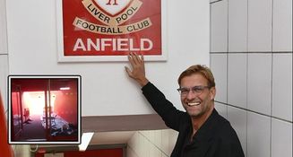 The iconic “This is Anfield” sign is still there, but the stadium’s tunnel looks completely different.