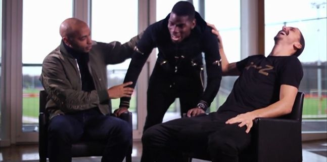 Ibrahimovic then continues answering a question which Henry had asked him earlier but it doesn’t take long before Pogba’s presence puts them off track.