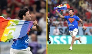 During the second half, he was briefly caught on camera as he ran onto the field holding aloft the rainbow flag. He also wore a t-shirt, carrying messages in support of Ukraine and women in Iran.