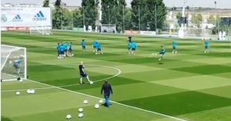 The Real Madrid manager helped out at Los Blancos training this week by pinging a few balls towards his players as they went through some routine training drills.