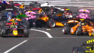 The Formula Two Monaco GP has been brought to a standstill following a huge 12-car pile-up.