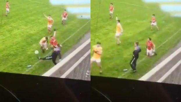 Encouraged by the leniency, the same coach on the sideline made his way back across the white lines one more time before the game was out. So, with time nearing its conclusion and the decisions still not to his liking, he took action. Another counter attack, another perilous situation, only one man for the job. Rather than attack the man this time, he had eyes only for the ball and ran in and hit the O’Neill’s one almighty thump with his fist as it was hurtling upfield. The second offence finally drew a red card.