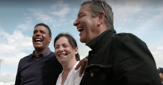 At the end of the game, where Carlow ran out seven point winners in a scoreline of 2-14 to 0-13, the two McGovern brothers came out to meet the Soccer Saturday stars alongside their mother and concluded that “football could learn something from this, our football that is.”