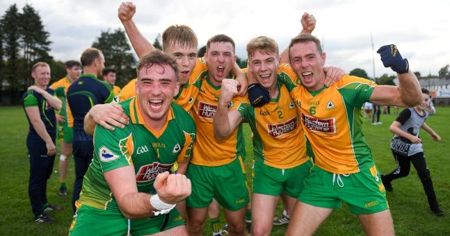 Corofin led by 2-4 to 1-5 at half time through goals from Kieran Molloy and captain Jason Leonard, with Michael Pollock netting for the Antrim outfit.