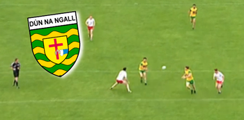 13 steps, amazing right-footed effort, Donegal relegated from the national league and nothing they can do about it.